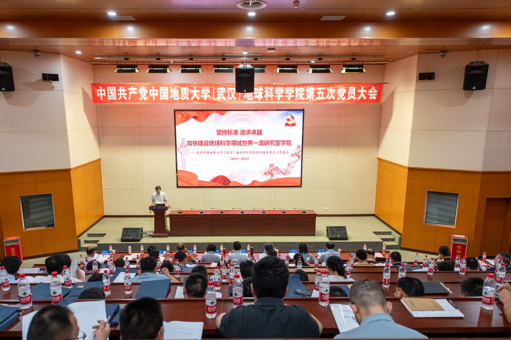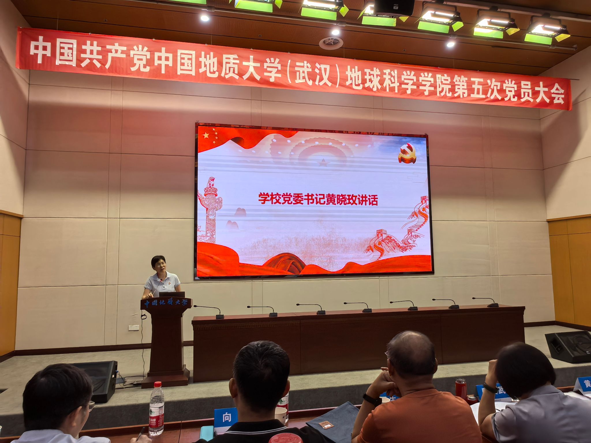 黄晓玫书记发表讲话,她对学院党委以党建高地建设,推进地学人才培养高地、科学研究高地和学科高地建设的下一阶段工作思路表示肯定,并希望新一届党委委员和纪委委员加强学习,充分贯彻《中国共产党普通高等学校基层组织工作条例》,坚持民主集中制、坚持从严治党,紧抓党风廉政教育,确保党的教育方针政策得到贯彻落实。