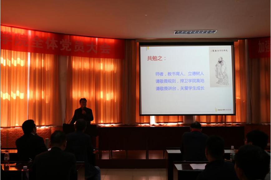 首先,学院党委书记王甫向全体教工介绍了召开此次全体教工大会的背景,他向教师传到了学校对于严肃科研经费管理的要求。他强调“科研经费是国家公共资金,要严格按照国家、学校有关管理规定使用”,明确重申了学校《纵向科研经费管理办法》和《横向科研经费管理办法》的相关要求,并结合案例向参会教师阐明了违规使用科研经费是违反党纪国法的严重行为。分别传达了党委副书记、纪委书记成金华、党委书记何光彩、校长王焰新的讲话精神,要求老师们高度重视,明确责任,增强法律意识和规矩意识,牢固树立红线意识,底线意识,加强学习,切实提高执行力,一定要在12月30日前完成自查自纠,确保学院不出现科研经费使用违规违纪现象发生。