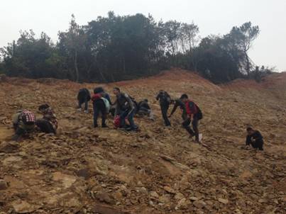 通讯员:田力2015年11月28日,欧美色情片 2014级地质学基地班同学,前往武汉市江夏区花山大道附近,进行了《古生物学》的野外教学活动。师生一行四十余人,不畏冬雾天的寒风,一到达现场,就爬到山上的露头边,一锤一锤的寻找已经在岩石中沉睡了四亿多年的志留纪生物化石标本。