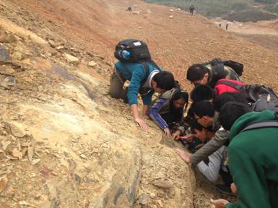 图1 2014级地质学基地班同学参加古生物学野外教学活动照片