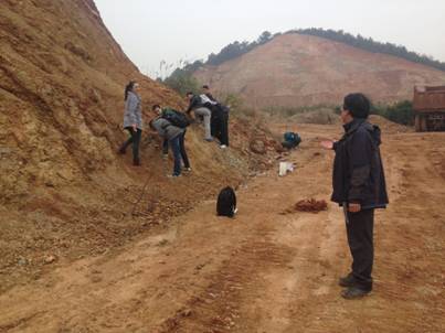“到野外来,让学生自己挖化石,让他们亲身参与,完成挖掘、描述和鉴定,这对于他们全方位的理解古生物学的学习和具体工作流程是不可或缺的。”童老师布置给此次野外的任务,是每人采集至少两枚有鉴定意义的化石标本,这对于这些本科二年级的同学来说,是一个非常有挑战性的任务。虽然,下午开始下起了大雨,野外教学不得不提前结束,但是大多数同学还是完成了自己的任务,满意的返回学校。