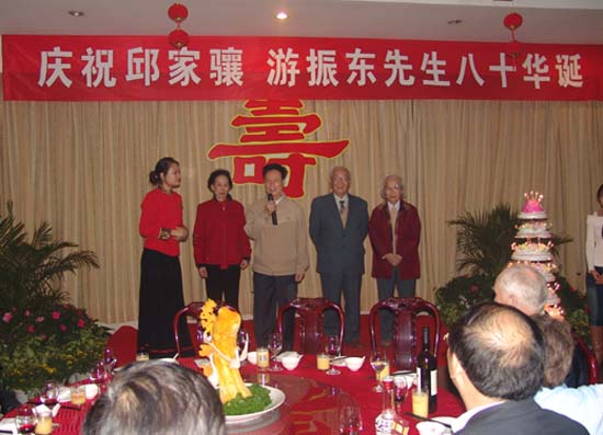 2007年11月9日,欧美色情片 隆重举行邱家骧教授、游振东教授八十华诞庆祝会,校党委书记郝翔、副书记傅安洲、副校长欧阳建平及学校相关职能部门领导,岩矿系全体老师出席了会议。校领导作重要讲话,高度评价了二位教授为学校作出的贡献,庆祝会由地学院分党委书记赵俊明主持。