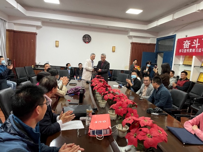 随后,马昌前、郑建平、赵珊茸、张宁老师等这些陈老师多年来的同事及教学、科研战线上的老战友相继做了热情而感人的发言,回顾了数十来年共事的点点滴滴,并祝福陈老师在退休的日子里健康快乐,家庭幸福。马昌前老师还为陈老师献上了自己精心准备的礼物作为留念。他们在多年来的教学和科研中结下了深厚的友谊,共同为地球物质科学系的发展做出了巨大的奉献。该系其他与会老师及陈老师的指导的已毕业博士生代表龚松林老师、廖凡汐老师也都做了发言,感谢陈老师多年来的指导和帮助,祝福陈老师光荣退休,也纷纷希望陈老师能多回来指导工作。