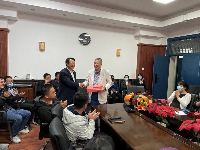 (夏彬、佘振兵)2021年10月15日地球物质科学系在主楼412为陈能松教授举行了隆重的退休欢送仪式,该系因为野外工作原因未能到场的几位老师也通过线上视频会议形式参与了仪式全程。