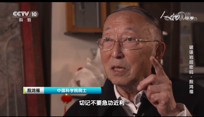殷鸿福院士在节目中寄语科研工作者和大学生,“学术上不盲从,不随大流,敢于挑战权威”,“不要怕失败,失败了再来”,“搞科学研究、治学,切记不要急功近利”。