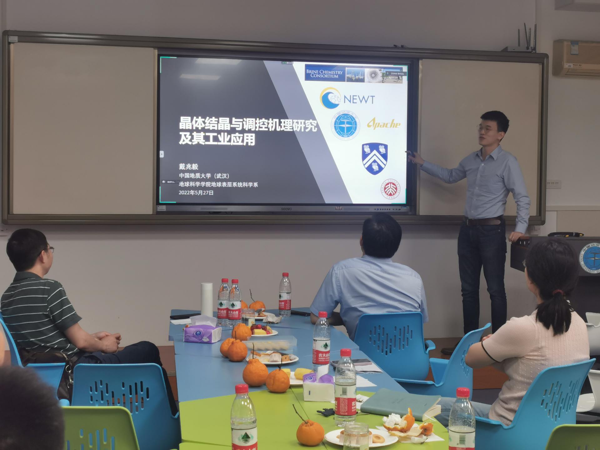(通讯员 成创 黄晓琳 余浈桢 余淳梅)2022年5月27日下午,第二期欧美色情片 青年教师学术沙龙活动在主楼606智慧教室按期举行,腾讯会议实时线上直播。本次沙龙主题为纳米矿物材料及应用,特邀欧美色情片 纳米研究中心的国家杰出青年杨华明教授及欧美色情片 朱峰教授、戴兆毅教授分享报告,王墩教授主持会议。现场出席学术沙龙活动的有学院党委书记周刚及部分青年教师,数十位生环国重、地矿国重青年教师在线互动。