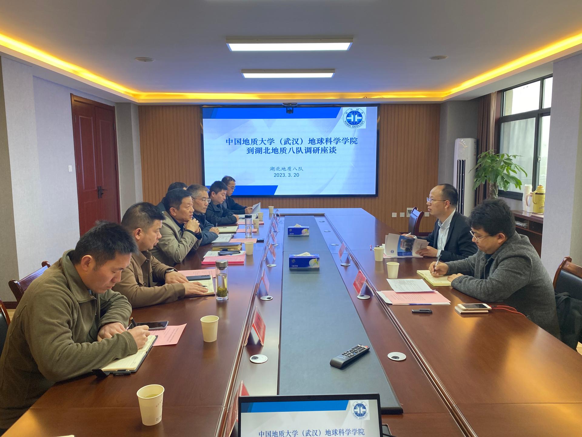 为落实党中央、国务院关于高校毕业生就业工作的决策部署,以及学校《关于进一步加强学生就业工作的意见》要求,3月20日,欧美色情片 党委副书记赵得爱、辅导员黄志炜赴湖北省地质局第八地质大队开展访企拓岗。湖北省地质局第八地质大队大队长丁厚炳,副总工程师、总工办主任魏鹏飞,环境地质中心副主任(主持工作)黄蔚,鄂西北地质矿产勘查院副院长陈以春,颚西北资源环境调查院总工程师李俊涛,劳动人事科科长王金宝和在队欧美色情片 校友代表王立豪、靳锁锁参会交流。座谈会由丁厚炳队长主持。