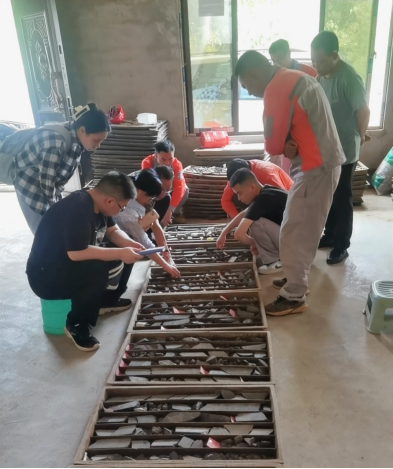余文超老师指导学生进行钻孔岩心编录