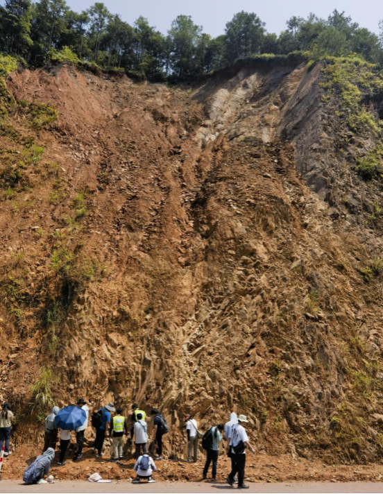 2024年9月4日,迎着烈烈的骄阳,中国地质大学(武汉)重走长征地质路和南岭经典地质路线考察队一路奔赴向西南,来到湖南省、广东省和广西壮族自治区三省交界的鹰扬关,探讨扬子地块与华夏陆块之交混杂岩带的地质特征,随后到桂林市考察喀斯特地貌特征,奔赴兴安县探索世界灌溉工程遗产地灵渠,最后到全州红军长征湘江战役纪念馆参观学习后结束行程。