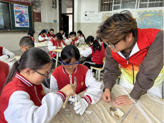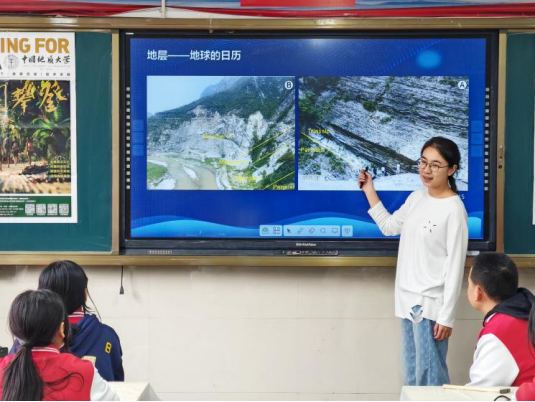 11月21日,学院党委副书记赵得爱、地球物质科学系教授马昌前、“地学之光”科普讲解队成员代表走进楚雄龙江中学,与学校第26届研究生支教团联合举办“把地球故事讲给你听”系列科普活动。马昌前教授首先以“改变世界的矿物岩石”为题,向师生科普了主要的岩石类型和形成过程,深入浅出地为同学们揭开了地质学的神秘面纱,为中学生们带来了一场精彩的科普盛宴。学院姜昕、李槟馨、罗明辉、李月如四位同学在科普小讲堂上为孩子们科普了古生物与矿物方面的知识以及池际尚院士为地质事业奉献终身的光辉事迹,让孩子们深刻感受到了老一辈地质学家的家国情怀,在科学家精神中汲取力量。