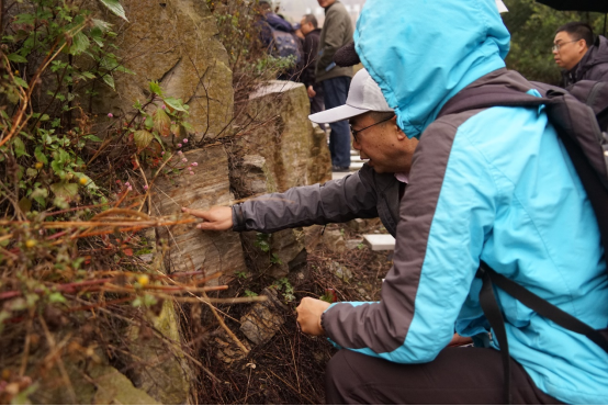 11月23日上午,在云南大学魏凡副研究员及中国前寒武系省级地质自然保护区管护局陈金龙局长、余波副局长、杨剑辉副局长等的陪同下,学院师生走进了云南省昆明市晋宁区昆阳街道梅树村昆阳磷矿采区,实地考察了震旦系——寒武系界线层型剖面(即“云南梅树村剖面”)。该剖面以其古生物化石的丰富性、保存完整度及研究深度著称。在这里,学院师生围绕磷块岩型磷矿成矿机理、震旦系——寒武系界线地层岩性特征、形成历史及化石种类展开了热烈的讨论和交流。