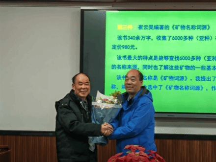 座谈会上,曾教授向地球物质科学系赠送了其享有30多年著作权的《晶体光学及光性矿物学》、历经10余年收集整理的矿物图片集以及一部总计320余万字的专业著作。
