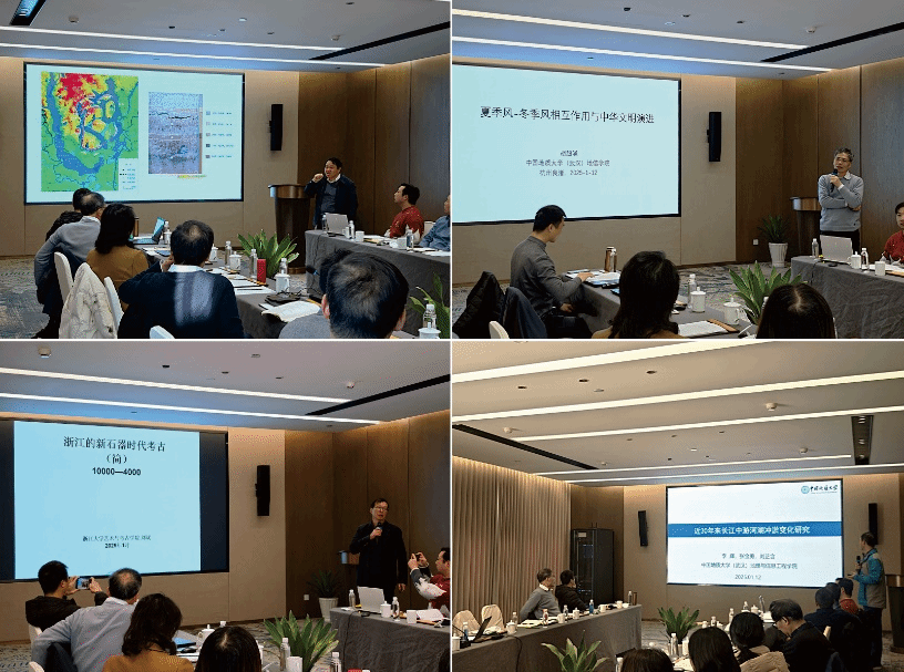通讯员 王檀 为了促进长江流域生态环境与生态文明的融合发展,继2024年后,流域关键带演化湖北省重点实验室、流域环境与长江文化湖北省重点实验室、区域生态过程与环境演变湖北省重点实验室于2025年1月11-13日在浙江省余杭良渚古城联合召开学术研讨会,会议主题为“长江流域环境演化与文明发展”。中国地质大学(武汉)、湖北省文物考古研究院、浙江大学、南京地质调查中心、浙江省地质院、浙江省良渚遗址管理区管委会等相关单位的专家学者受邀参加会议,共同探讨流域环境演变与长江中下游古文明演进的关系,凝练开展深度合作的关键科学问题。