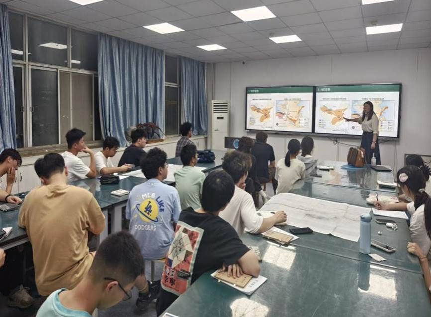 考虑到3个不同年级的同学不同的专业基础,以及野外实习涉及的混合岩在前期教学内容中涉及较少,6月27日晚,王璐老师开展出野前的室内教学工作。她向同学们详细介绍了麻城-木子店路线的研究区域、地质背景以及所有即将接触的岩石类型的介绍,深入浅出地讲解了混合岩区的基础理论和野外工作方法、大比例尺填图方法以及区域岩石构造背景等内容,为后续的实地教学奠定了坚实的理论和技术基础。