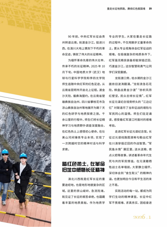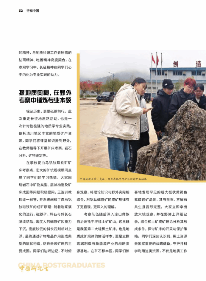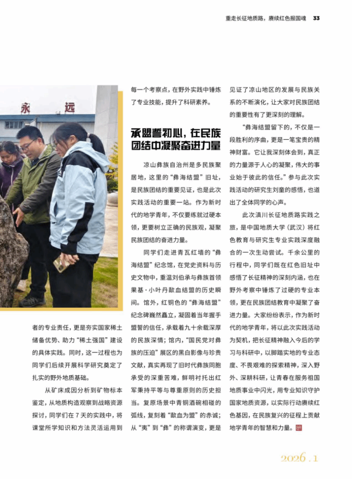 近日,《中国研究生》杂志以“重走长征地质路,赓续红色报国魂”为题报道欧美色情片 师生赴云南、四川等地开展“重走长征地质路”实践活动。