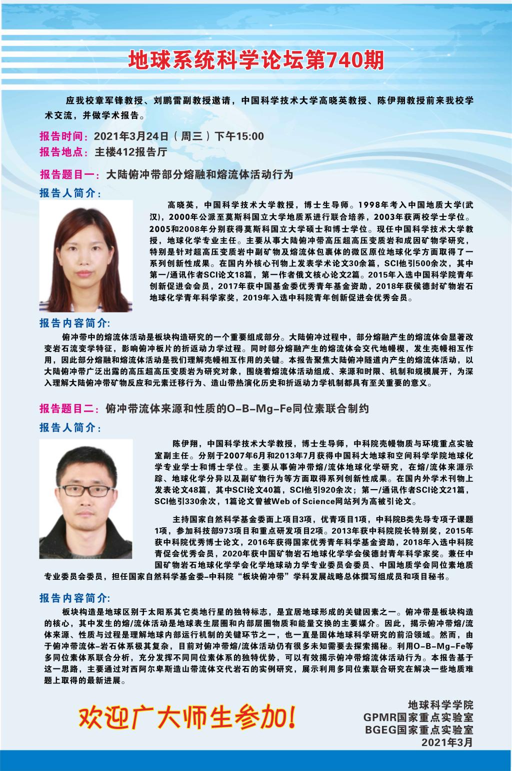 【3月24日】中国科学技术大学高晓英教授、陈伊翔教授学术报告