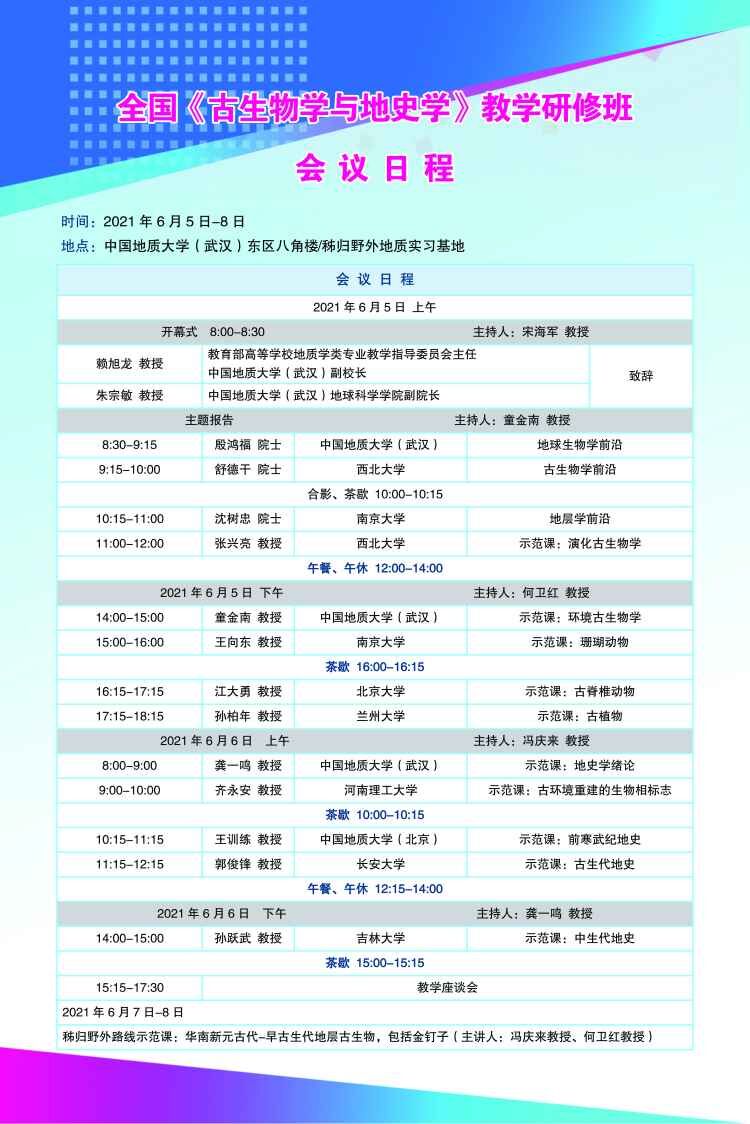 【6月5-8日】全国《古生物学与地史学》教学研修班会议日程