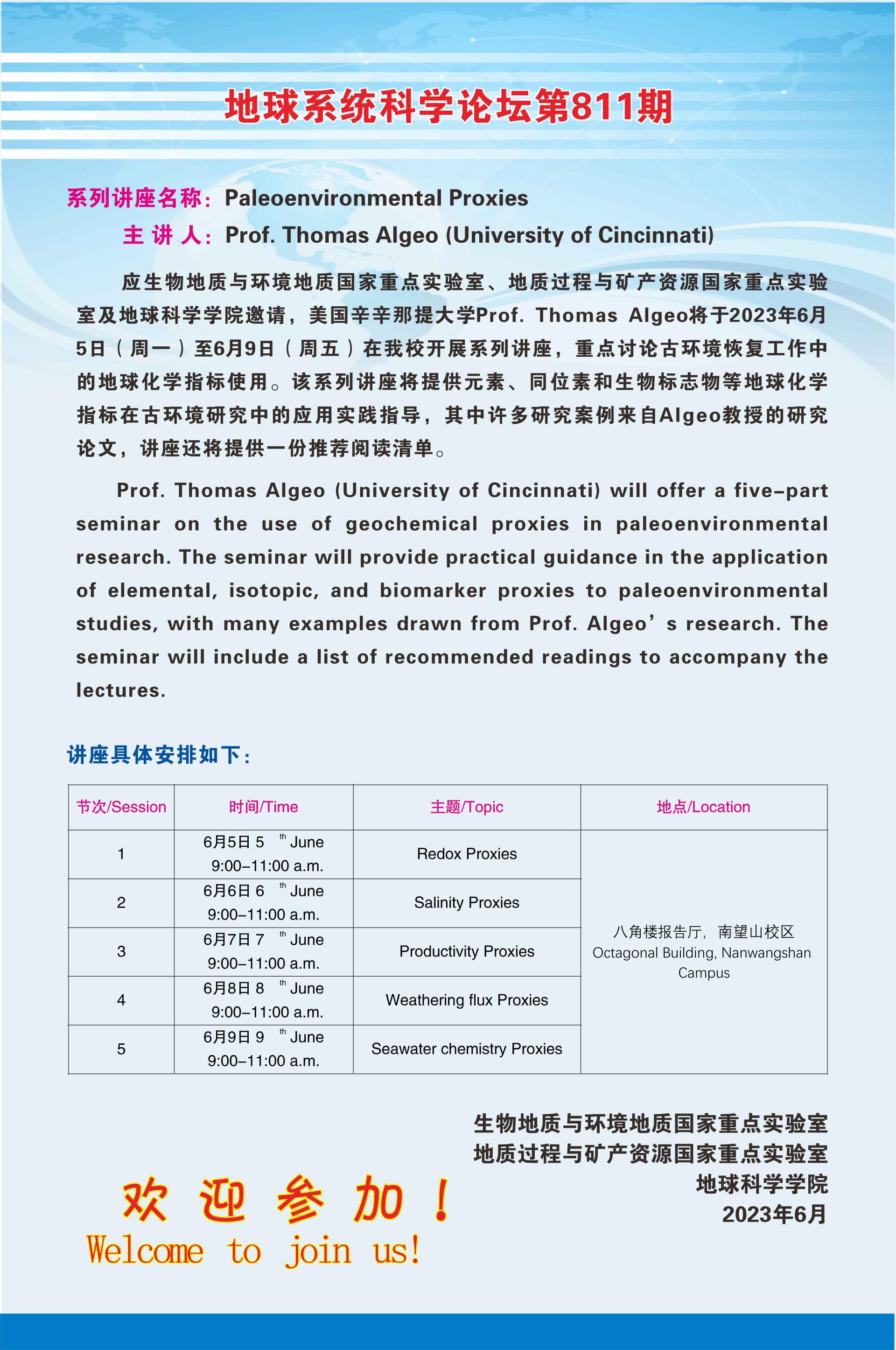 【6月5-9日】地球系统科学论坛(第811期)-Thomas Algeo教授系列讲座