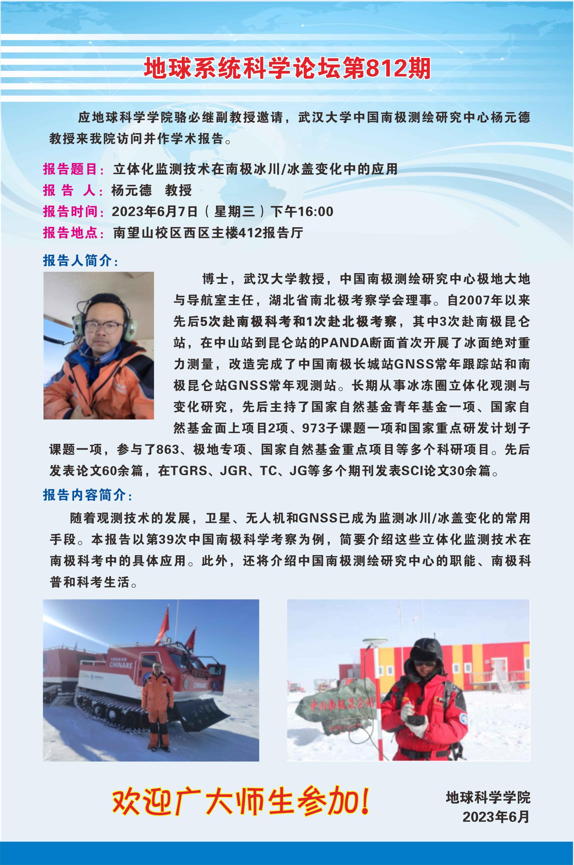 【6月7日】地球系统科学论坛(第812期)-杨元德教授讲座