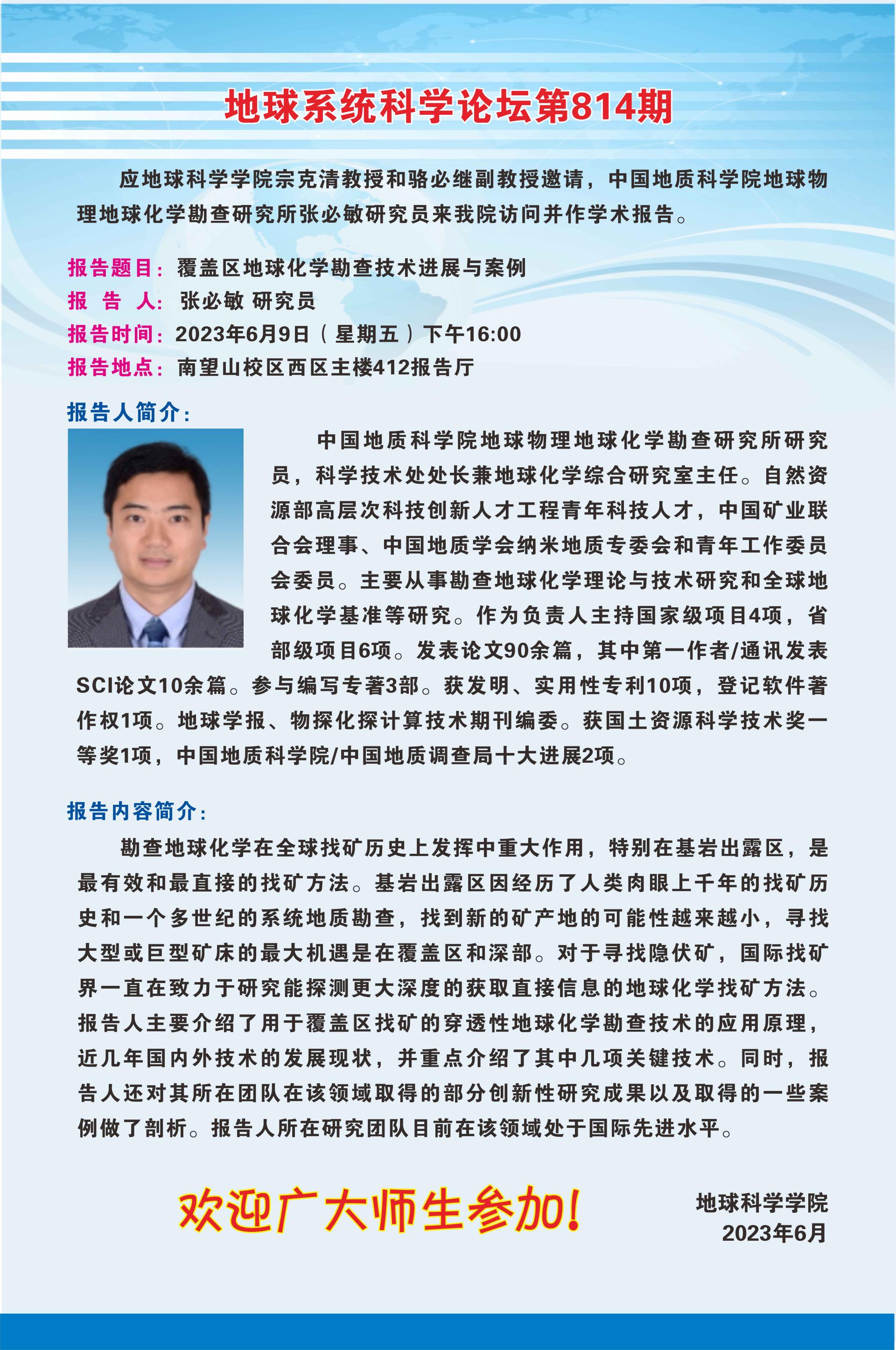 【6月9日】地球系统科学论坛(第814期)-张必敏研究员讲座