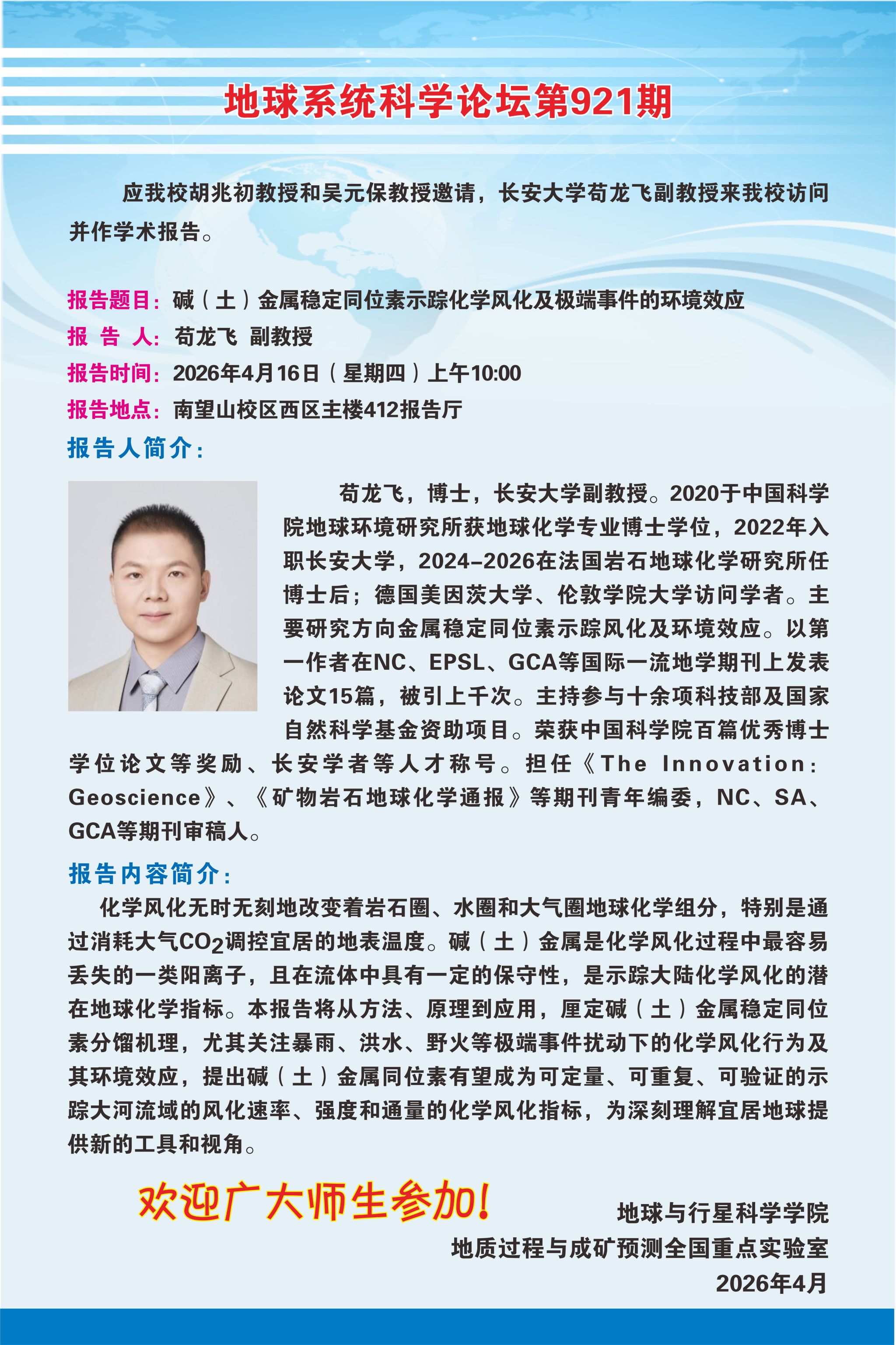 【4月16日】地球系统科学论坛第921期-苟龙飞、张飞