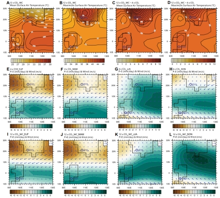 本研究利用CCSM 3.0地球系统模式开展了不同大气二氧化碳浓度下的气候敏感性实验,结果表明大气二氧化碳浓度的升高导致了致命的热浪、干旱及季节性气候的增强可能是造成陆地生态危机的重要原因。伴随着大气二氧化碳浓度的升高,华南陆表年平均温度升高6-7 ℃,季节性降水增强。华北地区温度和降水的季节性也显著增强,陆表年平均温度升高约8-10 ℃,最高温度可达42℃以上,极端高温和更严重的干旱导致了植物可用水分的缺乏。以上模拟结果与气候敏感沉积物和孢粉学的证据吻合。