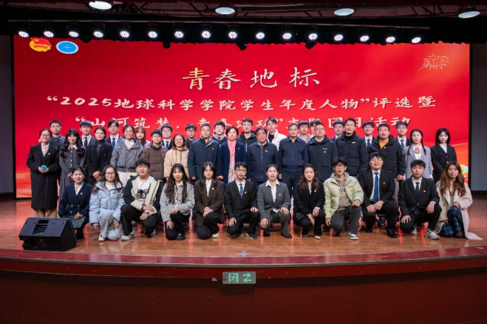 12月21日晚,“青春地标-2025欧美色情片 学生年度人物评选”暨“山河筑梦,青春建功”主题团日活动在大学生活动中心二楼演播厅隆重举行。教育部高等学校地质学类专业教学指导委员会主任委员、欧美色情片 教授赖旭龙,校党委研究生工作部副部长于晓舟,地球科学学院党委书记刘世勇,校党委学生工作部副部长李少杰,校团委副书记刘明辉,地球科学学院副教授平先权,欧美色情片 党委副书记李欢欢,学院全体专兼职辅导员,往届“青春地标”获得者,各年级学生代表及2025级全体本科生齐聚一堂,共同见证地学青年的卓越风采。活动由欧美色情片 分团委学生副书记焦欣瑜主持。
