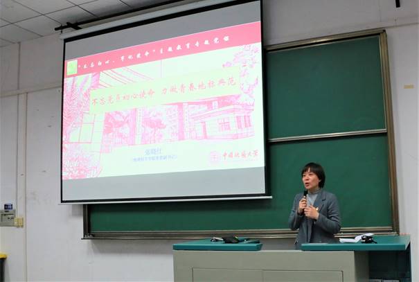 随后,学院党委书记王甫老师和党委副书记张晓红老师分别以“深入推进党支部建设的规范化制度化”和“不忘党员初心使命,力做青春地标典范”为主题,为全体学生党员讲授专题党课。王甫老师从党的初心和使命切入,引导学生党员要以“四条线”为牵引体悟初心使命,以本次“不忘初心、牢记使命”主题教育为契机,抓住“四个机会”,坚定理想信念,强化党员意识。随后他列举了目前党支部建设过程中存在的问题,并进行深度剖析,列出了解决办法,并对全体学生党员提出:坚守入党初心、亮明党员身份、提高政治站位、坚持勤奋学习的四点要求。张晓红老师带领同学们回顾地大发展创业的艰苦奋斗历史,提醒学生党员们要传承老一代地院人的地学初心,同时要发挥党员的先锋模范作用,做到平常时刻看得出、关键时刻站得出、危难时刻豁得出,成为同学们心中的标杆典范。