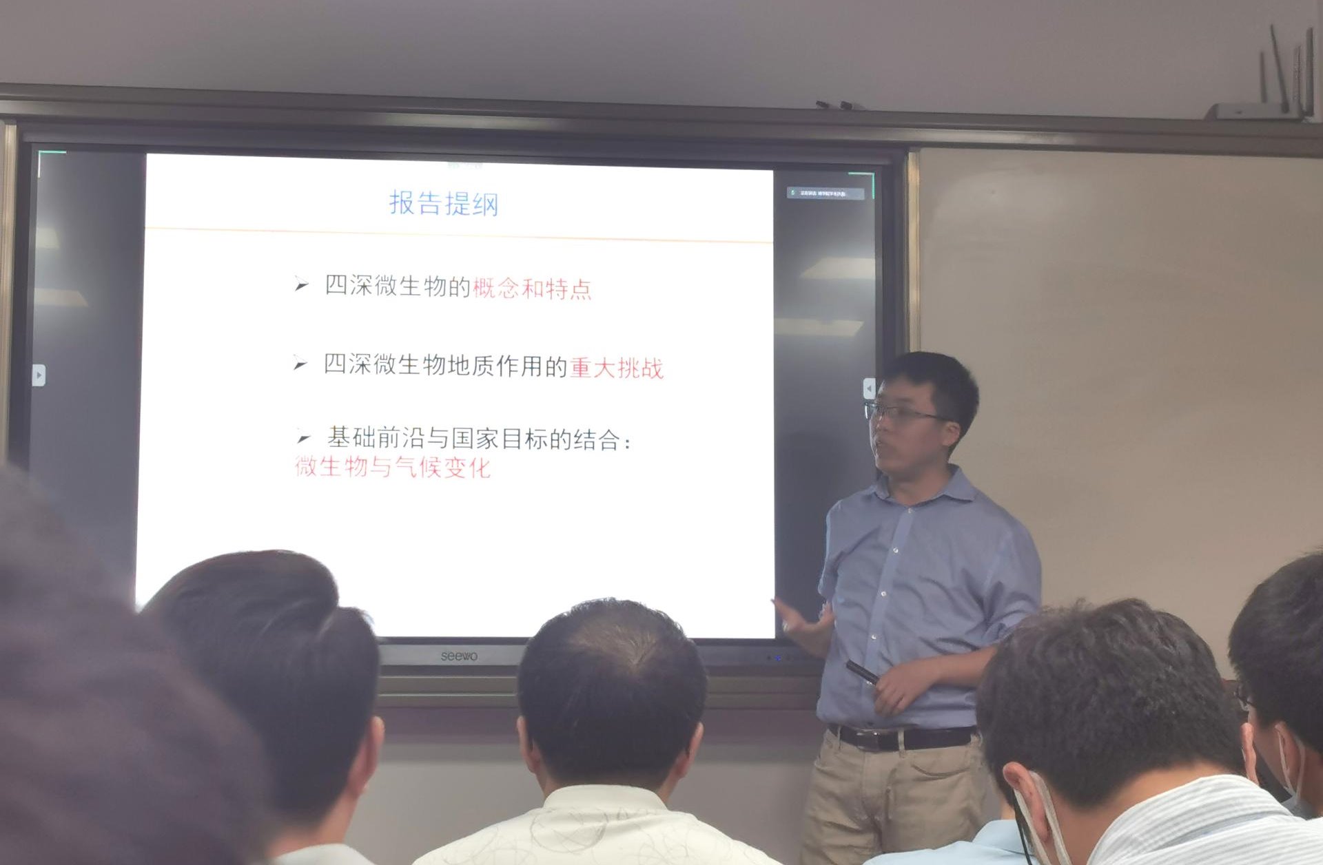 罗根明教授,以“链接基础前沿与国家目标的抓手”为主题,对四深微生物的概念和特点进行了阐述,总结了四深微生物地质作用的重大挑战,并提出基础前沿与国家目标的结合——微生物与气候变化。