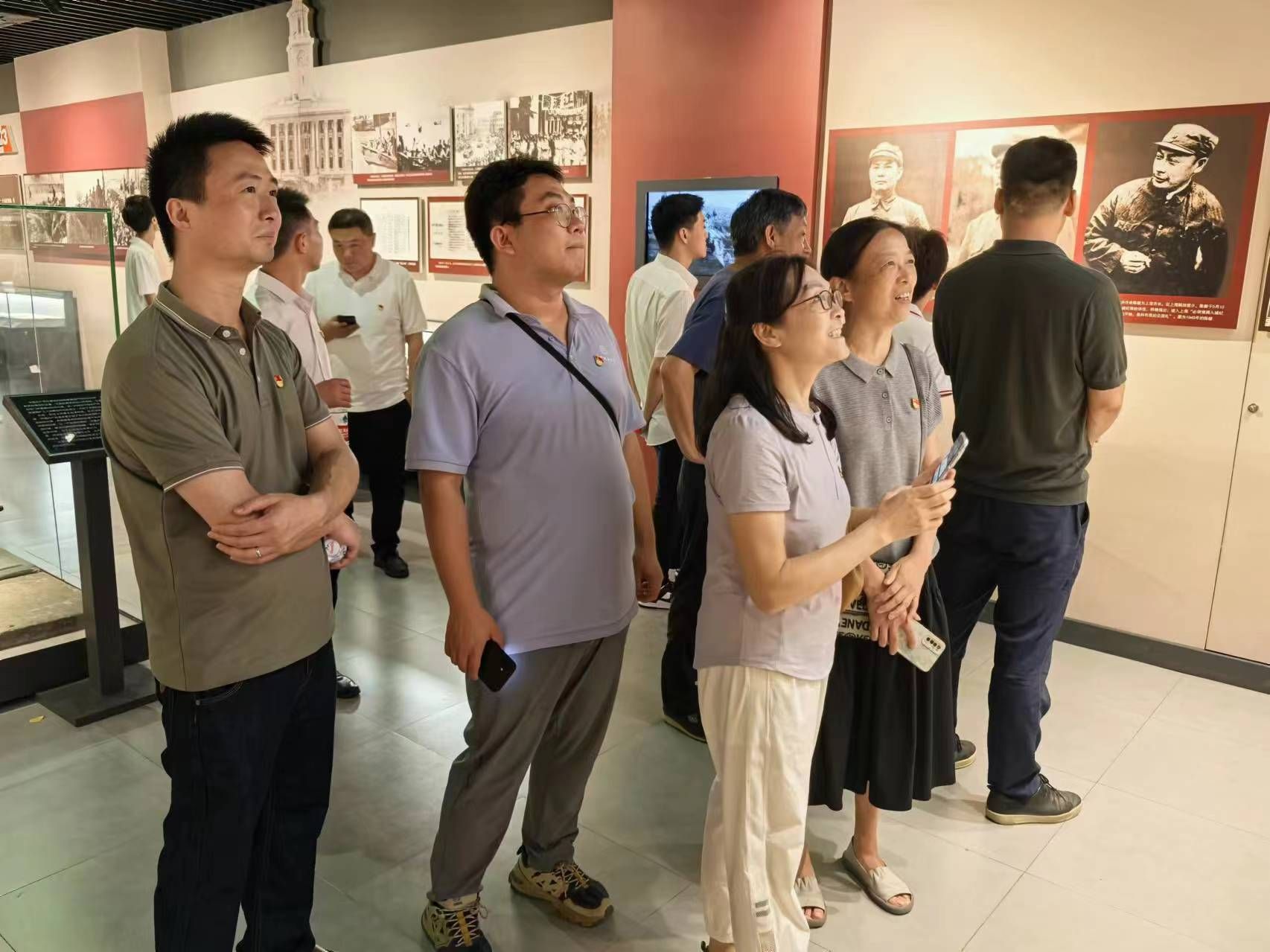 最后,在展馆内庄严的党旗下,全体党员肃立,齐声重温了入党誓词。